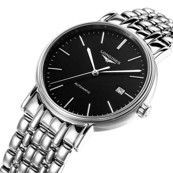 Корпус: Нержавеющая сталь, сапфировое стекло. Размер 40 мм, водонепроницаемость 30 метров. Циферблат чёрный.