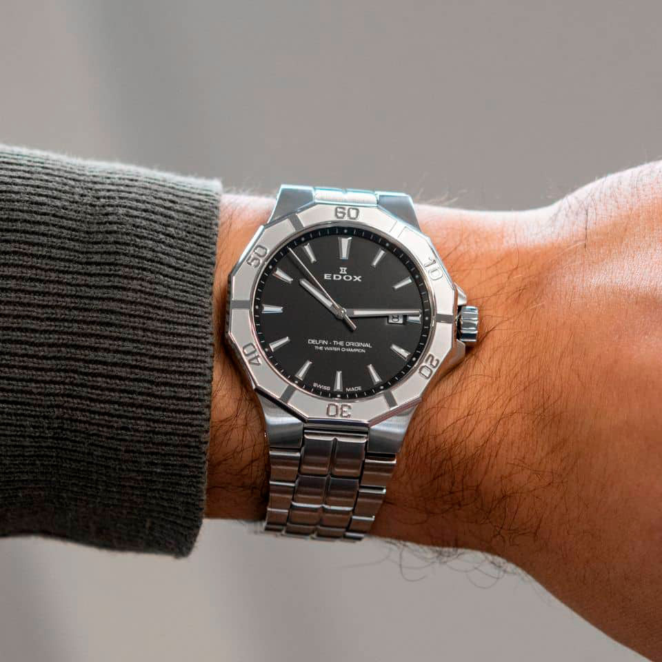 Корпус: Корпус из высококачественной нержавеющей стали. Чёрный циферблат. Часовые индексы и стрелки стальные, полированные с покрытием Super-LumiNova®. Сапфировое стекло с антибликовым покрытием. Однонаправленный безель вращается со щелчками в направлении против хода стрелок, рельефная поверхность с гравированной разметкой в виде больших цифр. Завинчивающаяся заводная головка. Диаметр 43 мм. Водонепроницаемость 200 м.