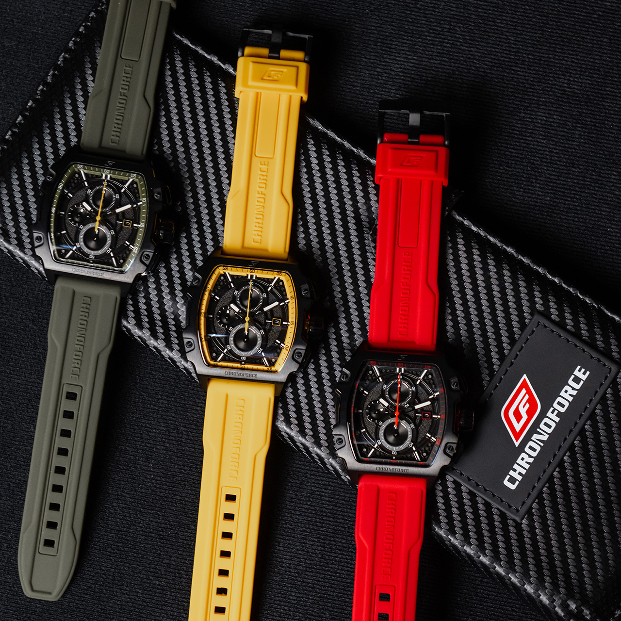 Ремешок: Ремешок изготовлен из мягкого и приятного к телу силикона. Каждые часы бренда Chronoforce имеют уникальную упаковку, в виде мотоциклетного шлема.