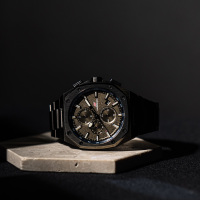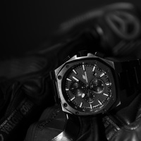 Корпус: Корпус выполнен из нержавеющей стали AISI 304, придающей часам особую прочность и стойкость от повреждений с IP покрытием. Часовые индексы и стрелки с покрытием SuperLuminova, которое обеспечивает подсветку в темное время суток. Циферблат чёрного цвета многослойный, словно 3D, основа покрыта металлизированной пудрой, для придания эффекта шершавости. Упрочненное минеральное стекло Hardlex(разработанное компанией Seiko Watch Corporation, которое обладает высокой устойчивостью к ударам и царапинам, около 7 баллов по шкале Мооса). Размер корпуса: 44 мм. Водонепроницаемость: 100 м.