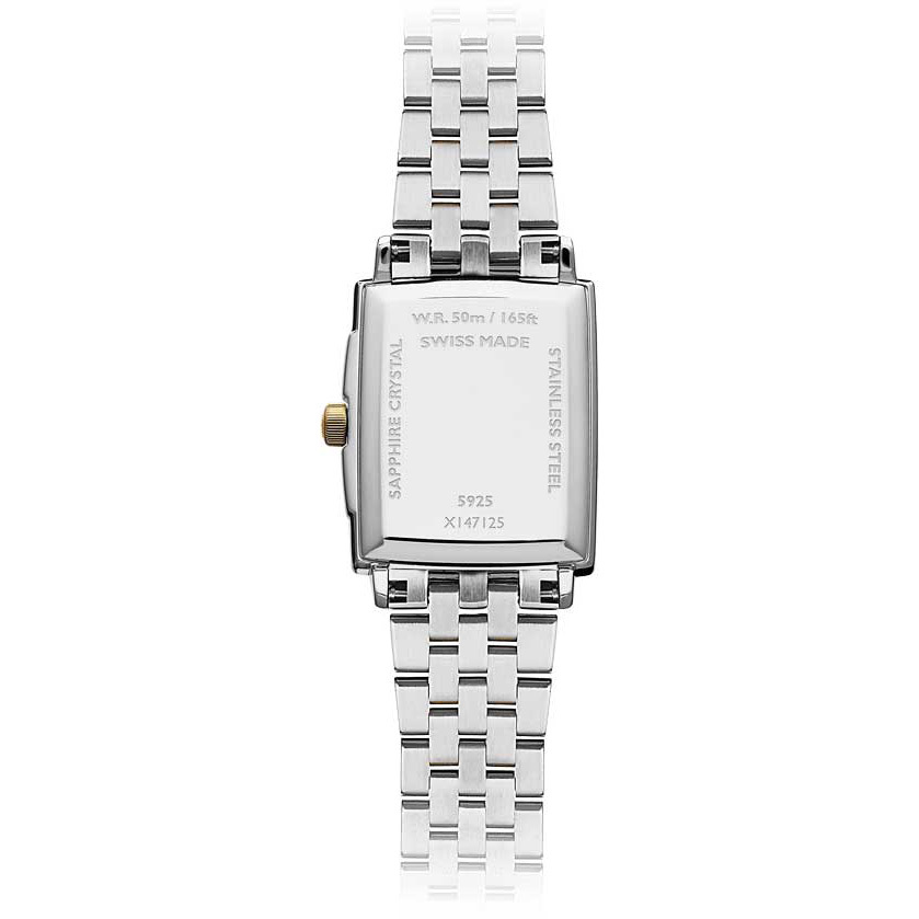 Ремешок: Модель на браслете из высококачественной стали с 5 рядами литых звеньев с частичным покрытием цвета золота. Браслетная застежка, раскладывающаяся при нажатии на кнопки с двойной системой блокировки, украшена гравировкой Raymond Weil.