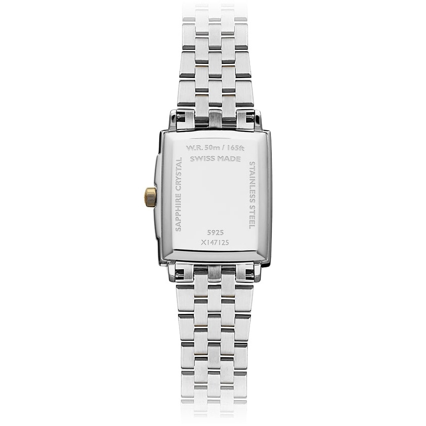 Ремешок: Браслет из высококачественной стали с 5 рядами литых звеньев с частичным покрытием цвета золота. Браслетная застежка, раскладывающаяся при нажатии на кнопки с двойной системой блокировки, украшена гравировкой Raymond Weil.