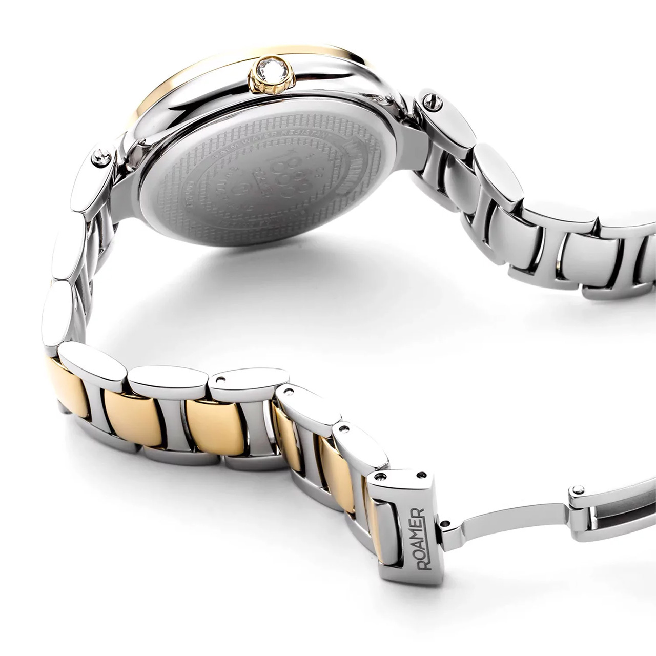 Корпус: Корпус из нержавеющей стали, марки 316L с частичным IP покрытием. Перламутровый циферблат с позолоченными стрелками и часовыми индексами в виде точек, дополнен драгоценными мерцающими камнями циркона. Сапфировое стекло с антибликовым покрытием. Благодаря изысканной двухслойной технологии циферблат удивляет эффектом вращения, который заставляет волнистый узор буквально двигаться, очаровывая, мягко покачивая нижнюю половину циферблата во время ношения. Диаметр: 36 мм. Водонепроницаемость: 50 м