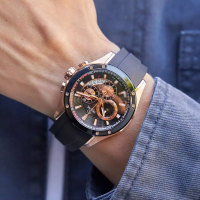Ремешок: Эти часы оснащены черным каучуковым ремешком с двойной кнопочной застежкой, которая позволяет легко открывать и закрывать ремешок, минимизируя его толщину на нижней стороне запястья. Дополнительно в комплете чёрный кожаный рмень.