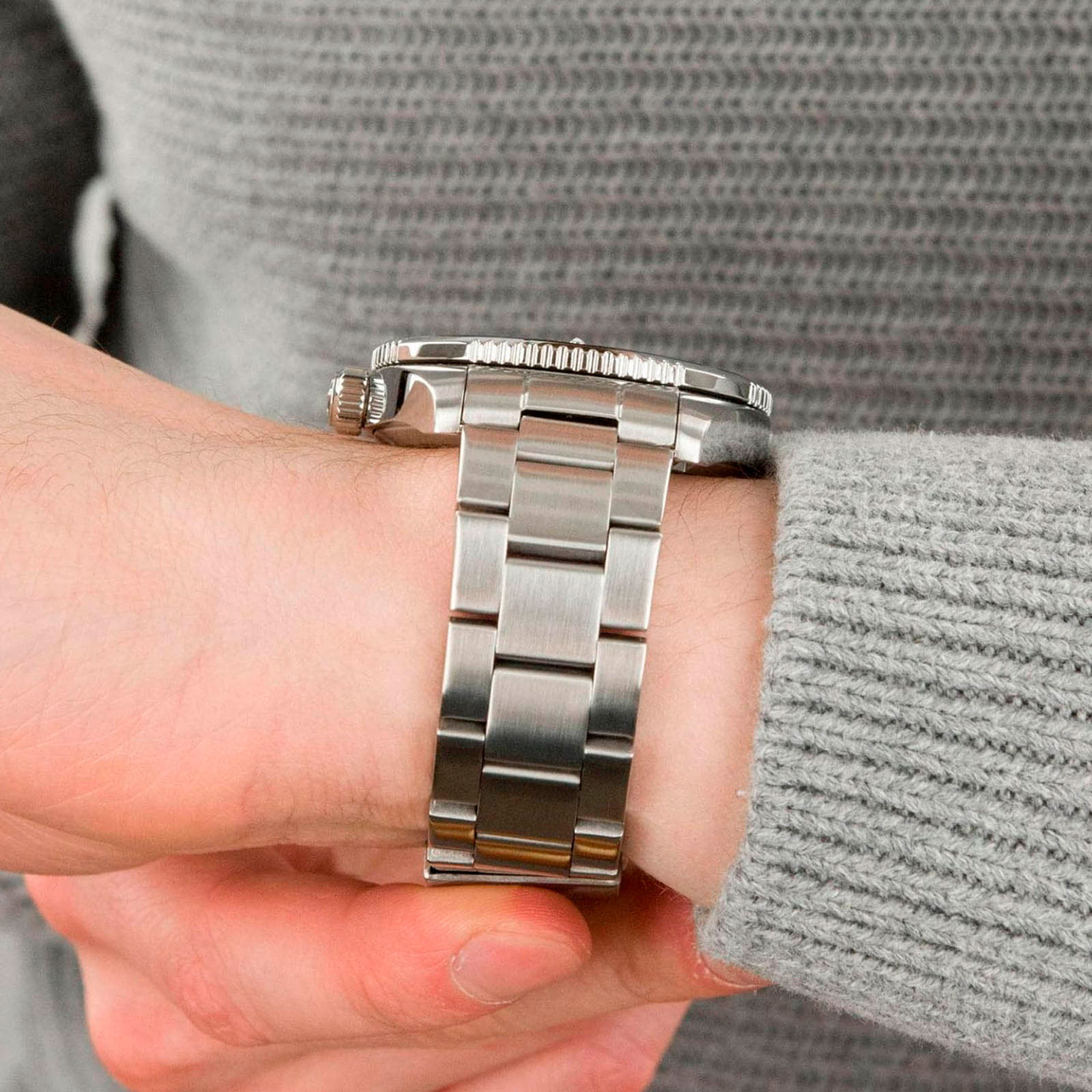 Ремешок: Нержавеющая сталь. Раскладывающаяся застежка с гравировкой логотипа.