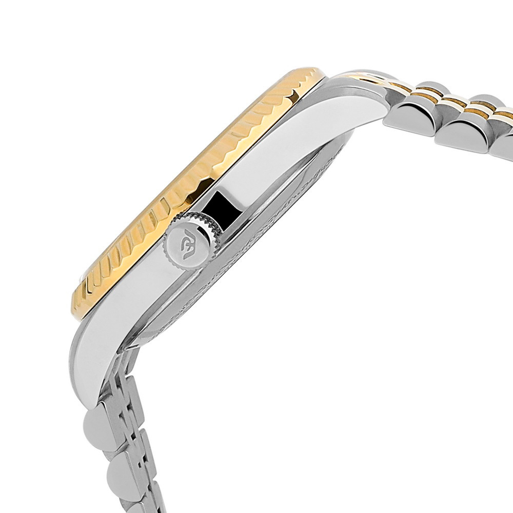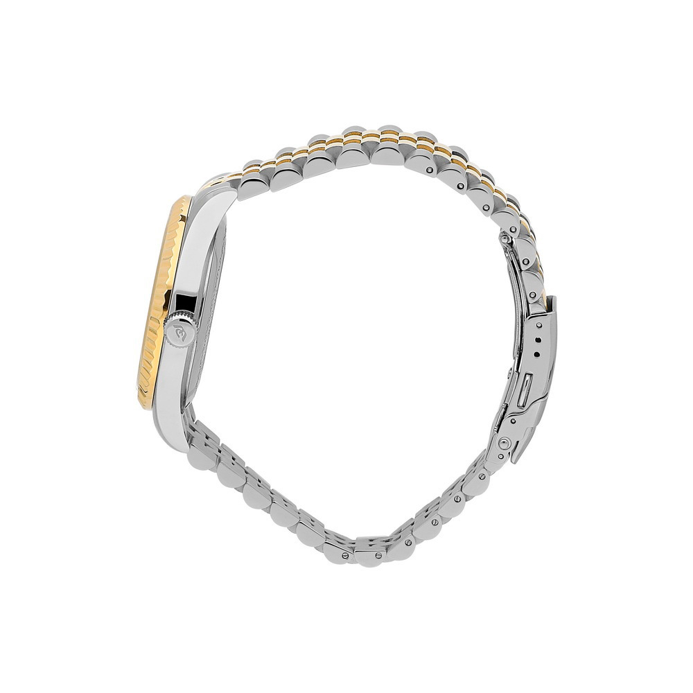 Ремешок: Браслет выполнен из высококачественной стали с повышенной устойчивостью к коррозии, поверхности с матовой шлифовкой – сатинированием и полировкой до зеркального блеска с частичным PVD покрытием, раскладывающеяся застежка на фиксации.