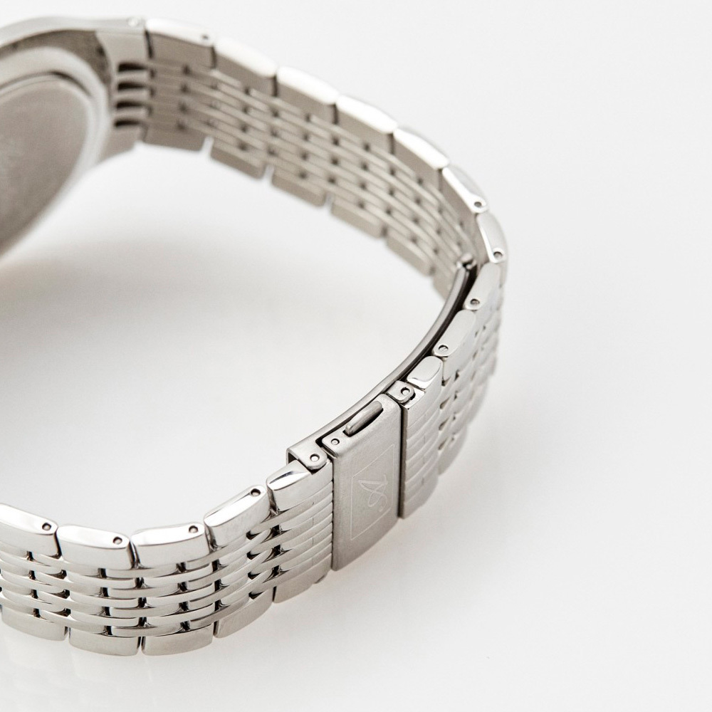 Ремешок: Браслет выполнен из нержавеющей стали. Браслетная раскладывающаяся застежка с гравировкой логотипа.