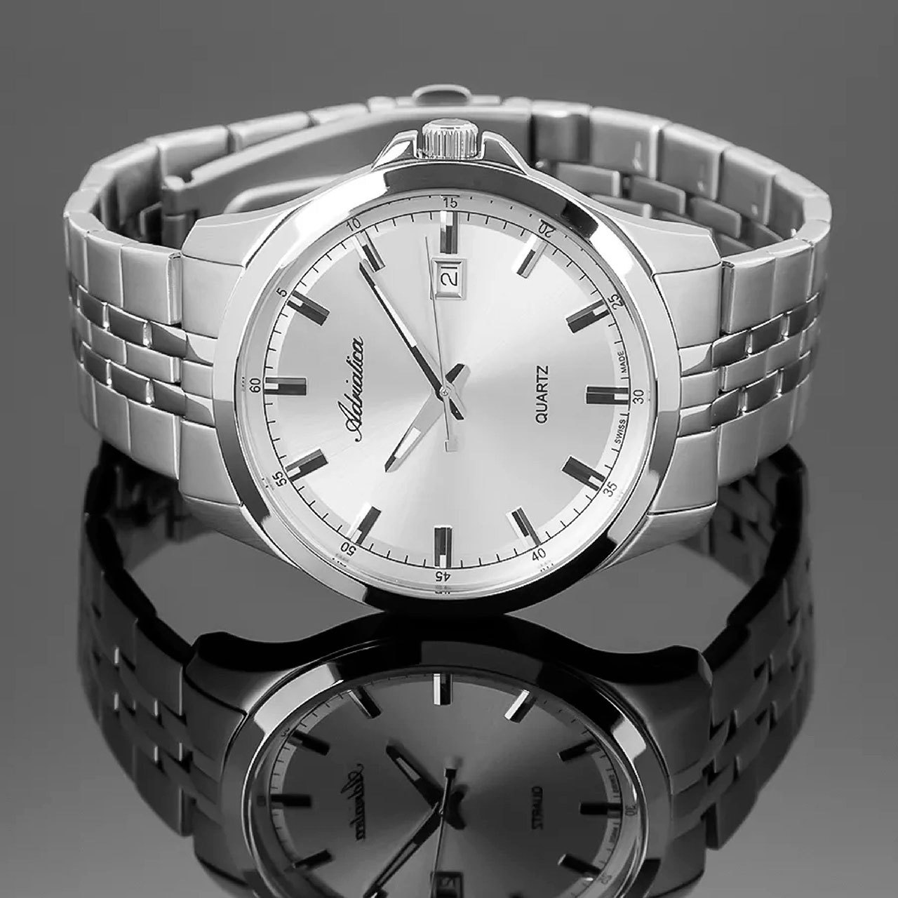 Ремешок: Браслет выполнен из высококачественной стали с повышенной устойчивостью к коррозии, поверхности с матовой шлифовкой – сатинированием и полировкой до зеркального блеска с раскладывающейся застежкой на фиксации.