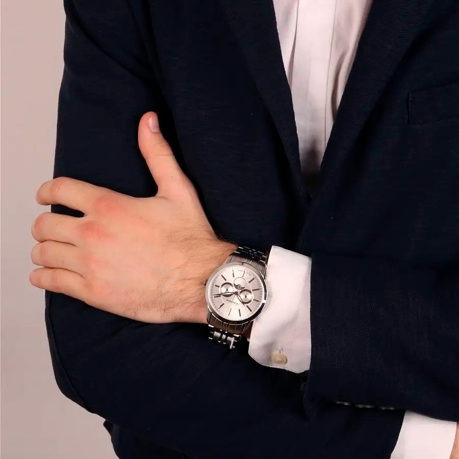 Ремешок: Браслет выполнен из высококачественной стали с повышенной устойчивостью к коррозии, поверхности с матовой шлифовкой – сатинированием и полировкой до зеркального блеска с раскладывающейся застежкой на фиксации.
