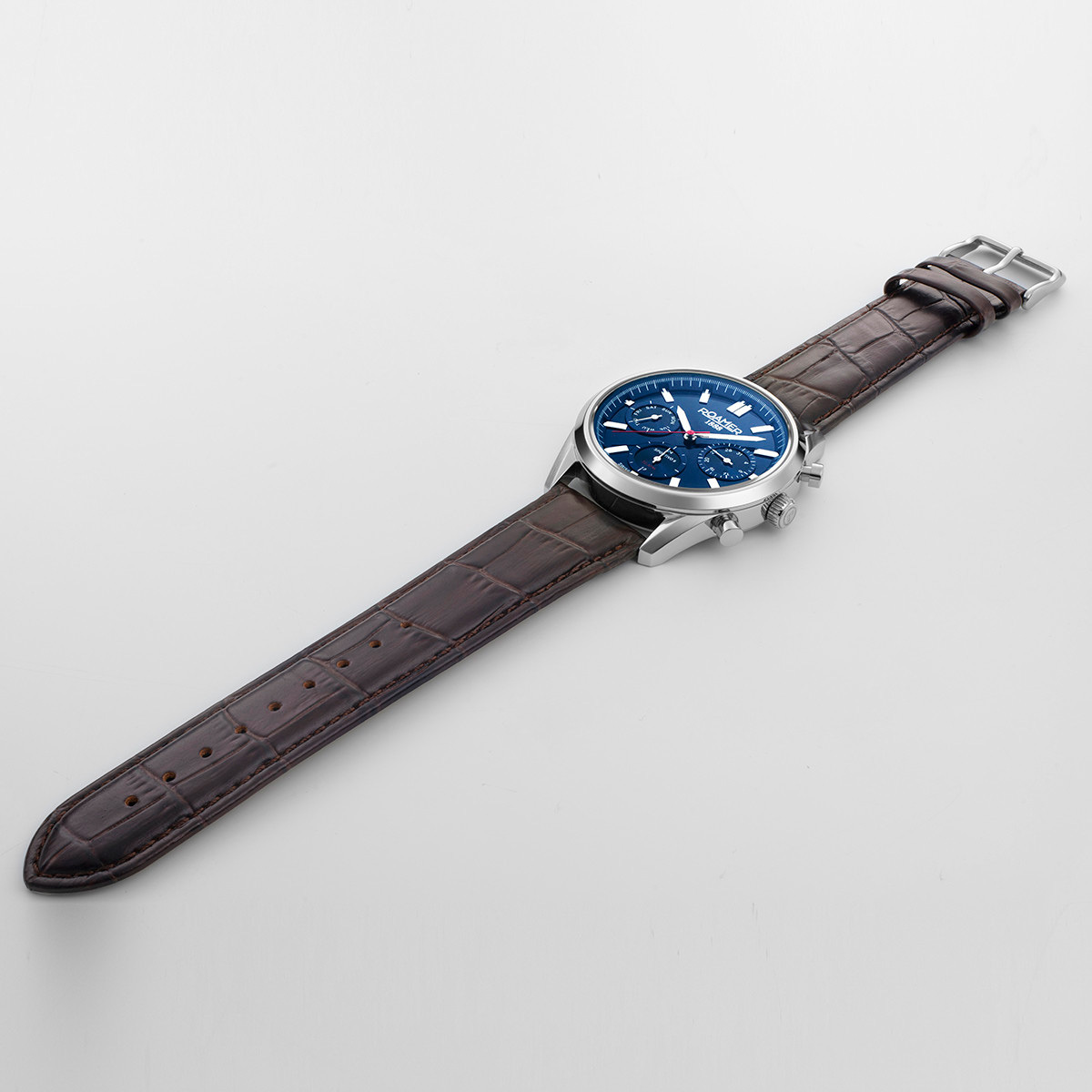 Корпус: Корпус выполнен из высококачественной нержавеющей стали 316L с полировкой и матовой шлифовкой - сатинированием. Синий циферблат, серебристые стрелки и часовые индексы с люминесцентным покрытием для оптимальной разборчивости в условиях низкой освещенности. Сапфировое стекло с антибликовым покрытием. Диаметр: 43 мм. Водозащита: 100 м.