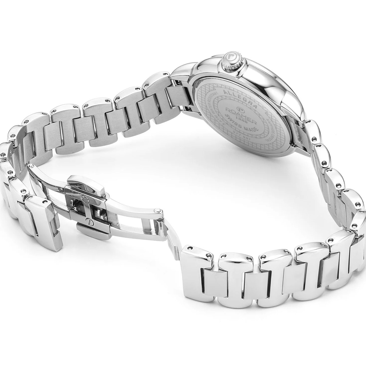 Корпус: Корпус из нержавеющей полированной/матовой стали. Белый перламутровый циферблат с серебристыми стрелками. Сапфировое стекло, устойчивое к царапинам с антибликовым покрытием. Диаметр 32 мм. Водонепроницаемость 30 м.