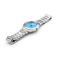 Корпус: Корпус выполнен из высококачественной нержавеющей стали 316L с полировкой и матовой шлифовкой - сатинированием. Циферблат голубого цвета, выполнен по технологии Sunray (солнечные лучи). Метки в виде штрихов и стрелки с люминесцентным покрытием Super-LumiNova. Сапфировое стекло с антибликовым покрытием. Рифленая заводная головка. Диаметр: 34 мм. Водонепроницаемость: 50 м.