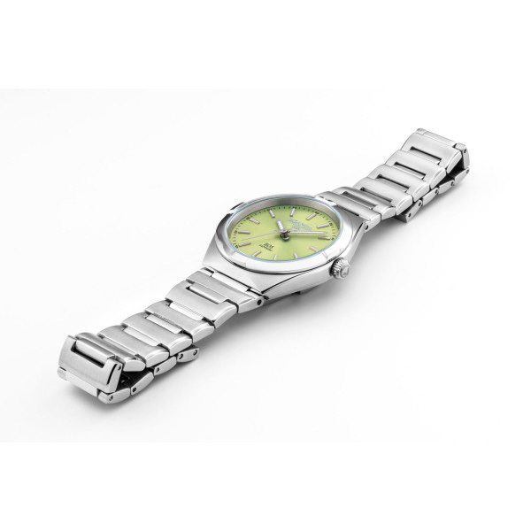 Корпус: Корпус выполнен из высококачественной нержавеющей стали 316L с полировкой и матовой шлифовкой - сатинированием. Циферблат бледно-зелёного цвета, выполнен по технологии Sunray (солнечные лучи). Метки в виде штрихов и стрелки с люминесцентным покрытием Super-LumiNova. Сапфировое стекло с антибликовым покрытием. Рифленая заводная головка. Диаметр: 34 мм. Водонепроницаемость: 50 м.