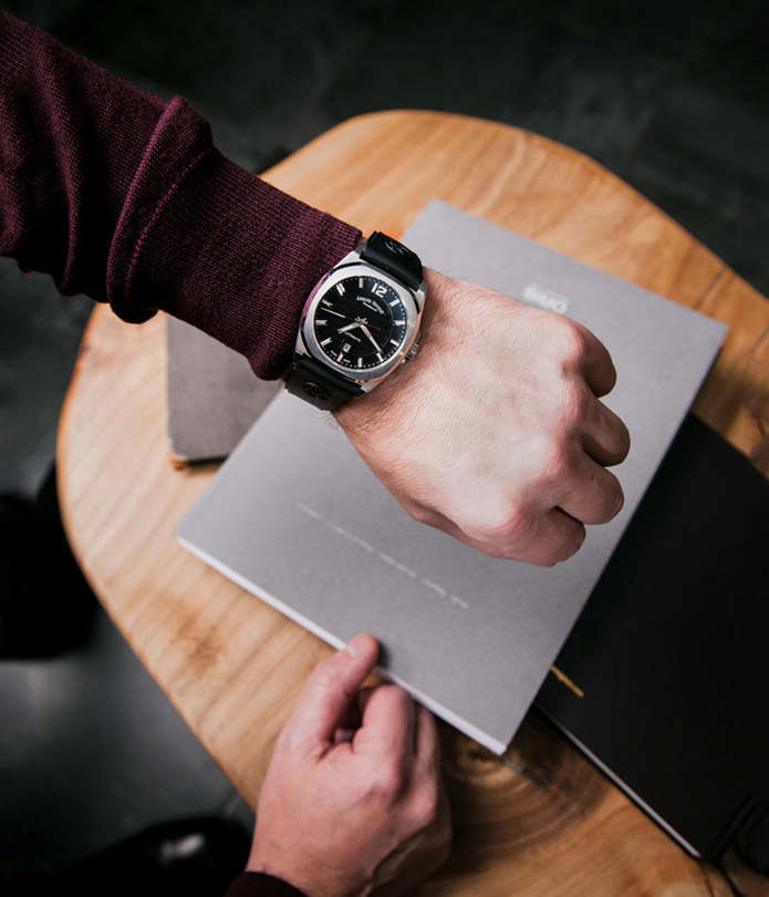 Корпус: Нержавеющая сталь. Сапфировое стекло с антибликовым покрытием. Диаметр 41 мм, водонепроницаемость 50 метров. Циферблат черного цвета.