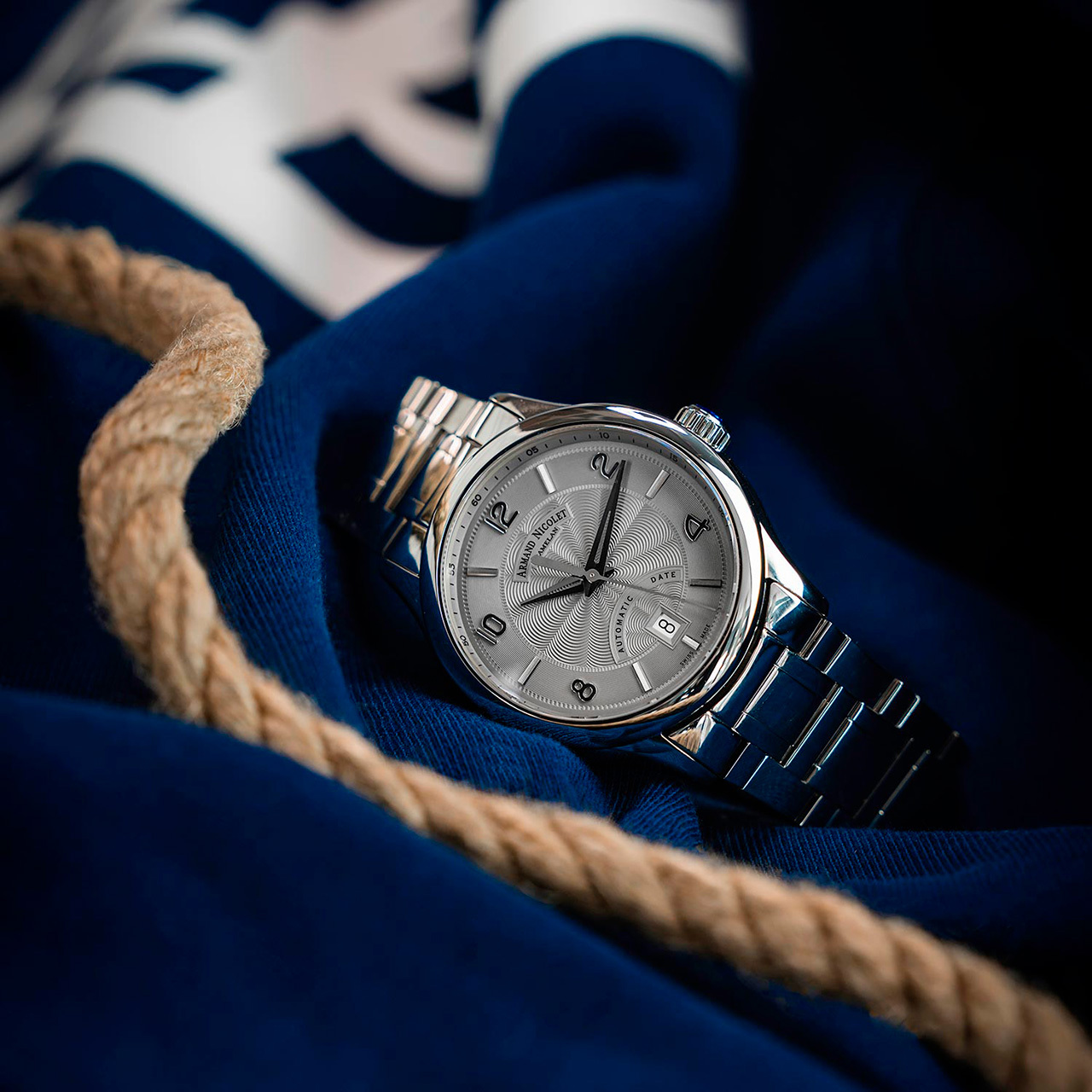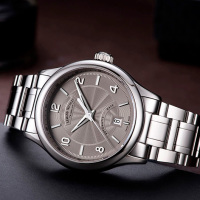 Корпус: Нержавеющая сталь. Серый циферблат, украшен декоративным узором - гильоше. Рифленая заводная головка. Сапфировое стекло с антибликовым покрытием, устойчивое к механическим повреждениям. Прозрачная задняя крышка. Диаметр 42 мм. Водозащита 100 м.