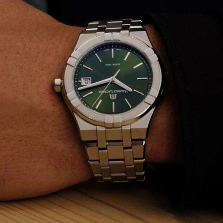 Ремешок: Браслет из нержавеющей стали с литыми звеньями в пять рядов, система быстрой замены ремешка/браслета, браслетная застежка с тройным сложением – «бабочка», раскладывающаяся при нажатии кнопок двойной блокировки, гравировка Maurice Lacroix.