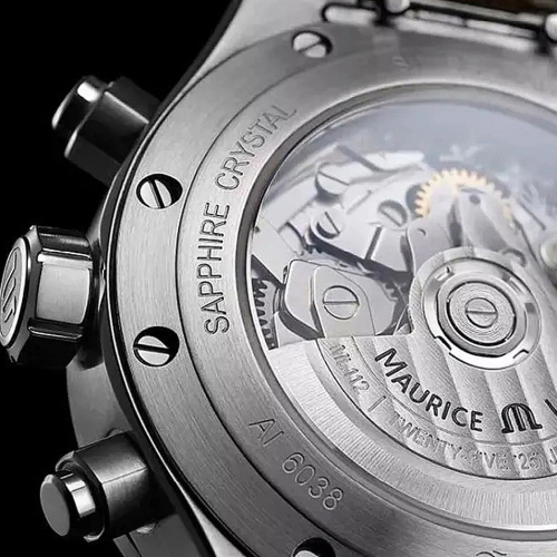 Механизм: Швейцарский механизм с автоматическим подзаводом ML 112 доработан и декорирован мануфактурой Maurice Lacroix. Механизм отрегулирован в 3 положениях для повышения точности хода. Запас хода составляет 48 часа, частота колебаний баланса 28.800 vph или 4 Hz, 25 рубинов в качестве камневых опор колесной системы и палет анкерного спуска.