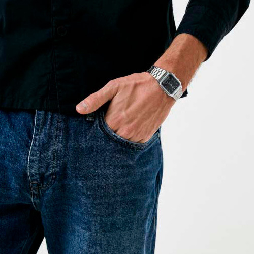 Ремешок: Браслет из нержавеющей стали располагает регулируемой застежкой, что позволяет часам плотно облегать руку и не создавать неудобств.