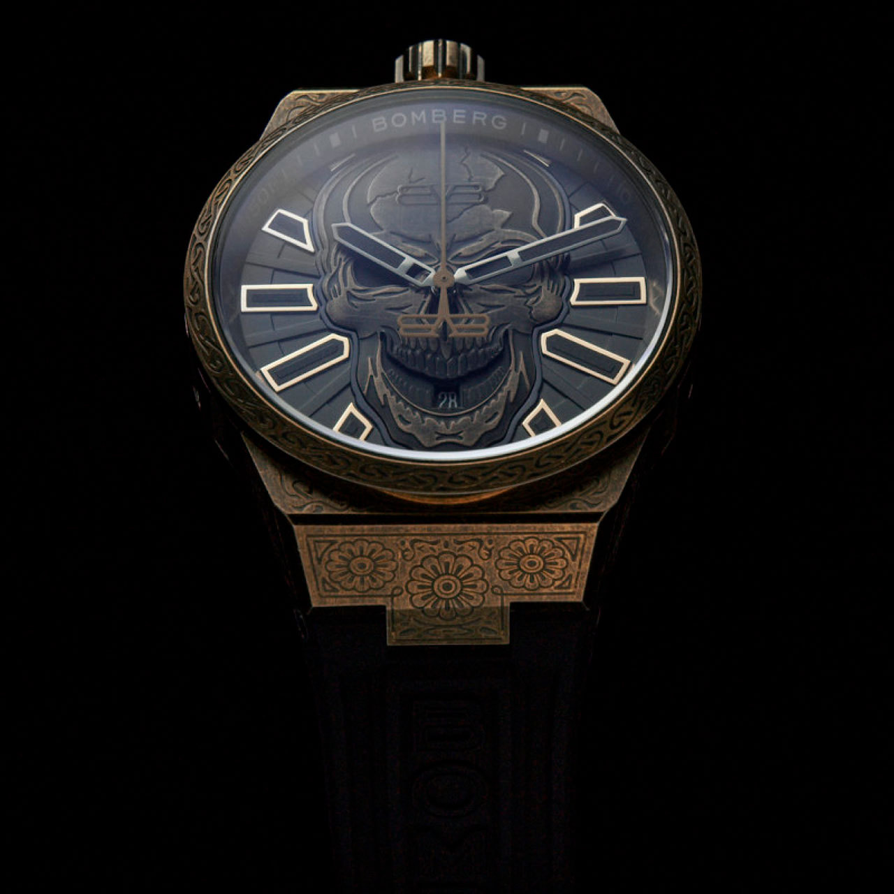 Корпус: Корпус из нержавеющей стали марки 316L с PVD - покрытием бронза, украшен замысловатой гравировкой Древа Жизни, символизирующей гармонию и связь. На циферблате чёрного цвета изображен уникальный рельефный череп. Индексы и цифры с родиевым покрытием. Фотолюминесцентное покрытие Super-Luminova® на индексах и стрелках добавляет остроты, обеспечивая при этом идеальную читаемость даже в самых темных условиях. Сапфировое стекло с антибликовым покрытием.