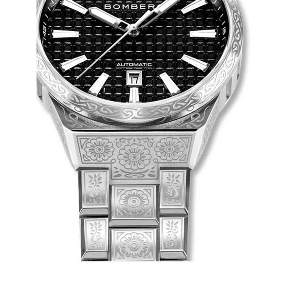 Корпус: Круглый корпус из нержавеющей стали украшен замысловатой гравировкой Древа Жизни, символизирующей гармонию и связь. Черный циферблат, эргономичная завинчивающаяся заводная головка на 12 часах из нержавеющей стали. Аппликация часовых индексов и стрелки с покрытием Super-Luminova®. Сапфировое стекло с антибликовым покрытием. Диаметр корпуса 43 мм, толщина - 14,2 мм. Задняя крышка с прозрачным стеклом. Водостойкость 100 метров.