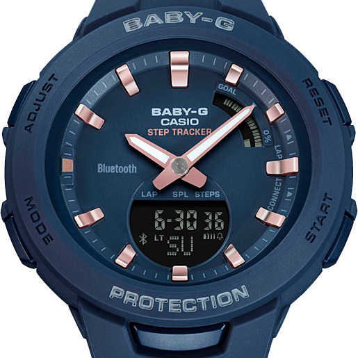 Механизм: Кварцевый. BABY-G с поддержкой соединения Bluetooth и вашего смартфона. При подключении к смартфону часы корректируют текущее время, а также копируют настройки мирового времени.