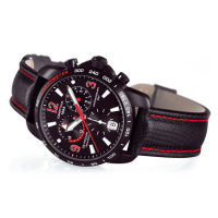 Корпус: Корпус из полированной/матовой нержавеющей стали с PVD - покрытием чёрного цвета и тахиметрической шкалой. Чёрный циферблат с серебристыми стрелками (часовая, минутная) и рисками. Часовая и минутная стрелки и риски с люминесцентным покрытием. Сапфировое стекло с антибликовым покрытием. Диаметр 42 мм. Водостойкость 100 м. Система DS.