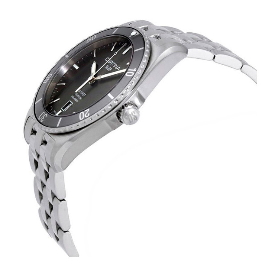 Корпус: Корпус из полированного/матового титана. Безель с 60 - минутной шкалой на керамическом чёрном кольце. Серый циферблат. Стрелки и часовые индексы золотистого цвета. Сапфировое стекло с антибликовым покрытием. Диаметр 41 мм. Водостойкость 200 м. Система DS.
