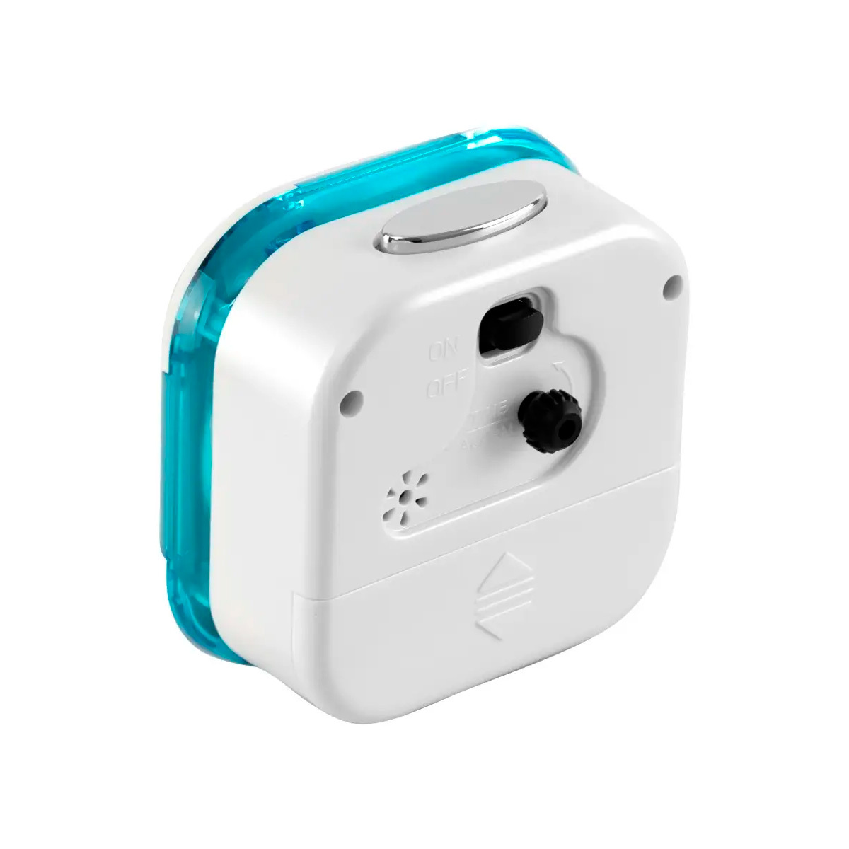 Цвет: Корпус - белый перламутр/голубой. Циферблат - белый. Арабские цифры чёрного цвета. Часовая и мунутная стрелки голубого цвета.