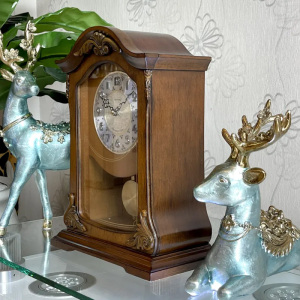 4. 3 рождественские мелодии каждый час. Автоматическое отключение на ночь с 22-00 до 6-00. Регулировка громкости звука мелодии. Настольные музыкальные часы с маятником и боем курантов, в деревянном корпусе.