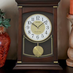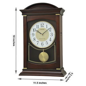 Цвет: Цвет корпуса темный орех. Стекло в красивую тонкую полоску дополняет качающийся маятник и декоративную отделку уголков золотистого цвета.