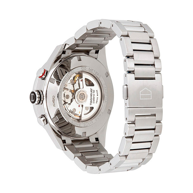 Ремешок: Браслет с литыми звеньями H-образной формы из нержавеющей стали 316L. Браслетная застежка, раскладывающаяся при нажатии на предохранительные кнопки двойной блокировки, украшена эмблемой TAG Heuer.