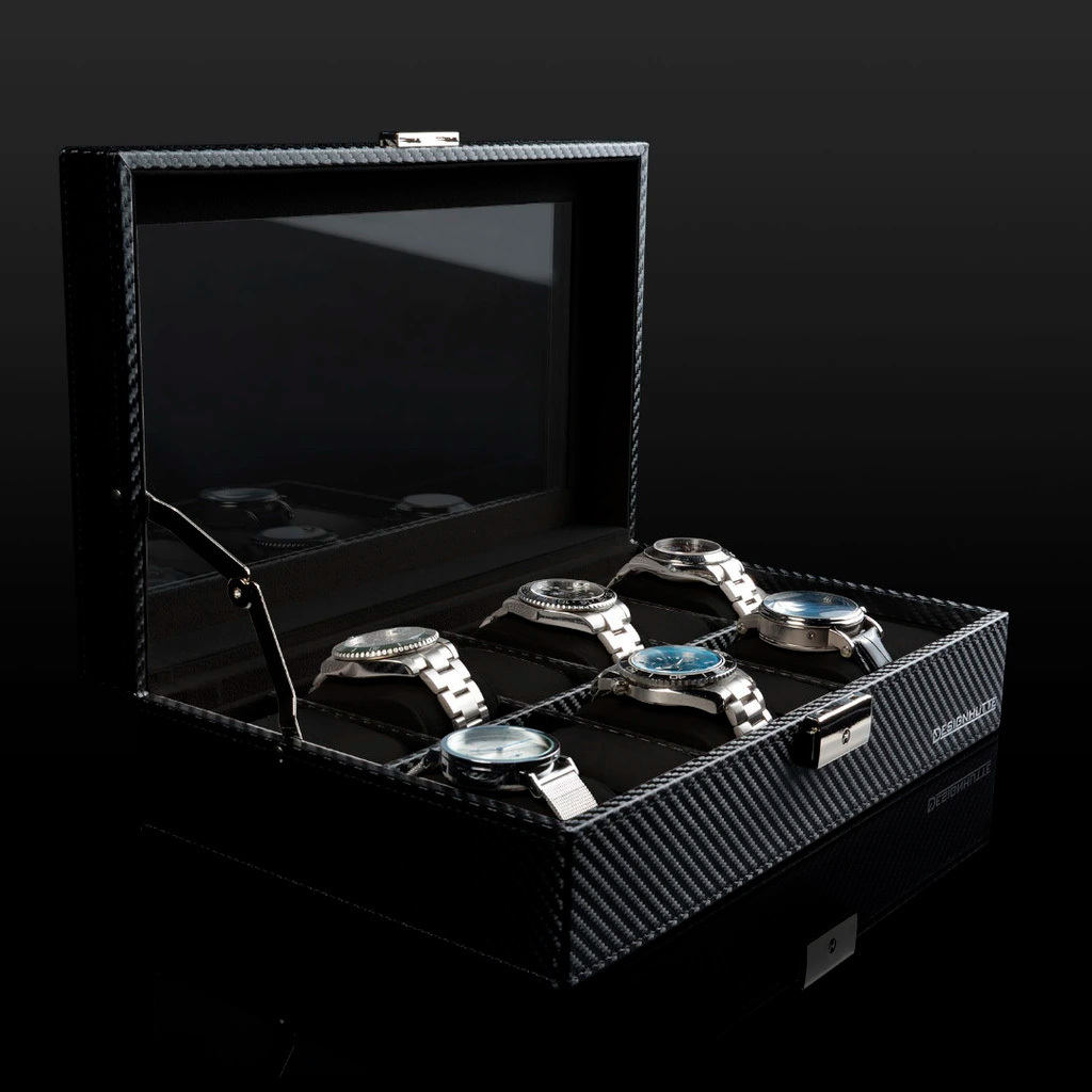 Описание: Элегантная коробка для часов Designhütte Boston 12 70005-185 на 12 часов со стеклянной крышкой. Корпус закрывается на замок.
