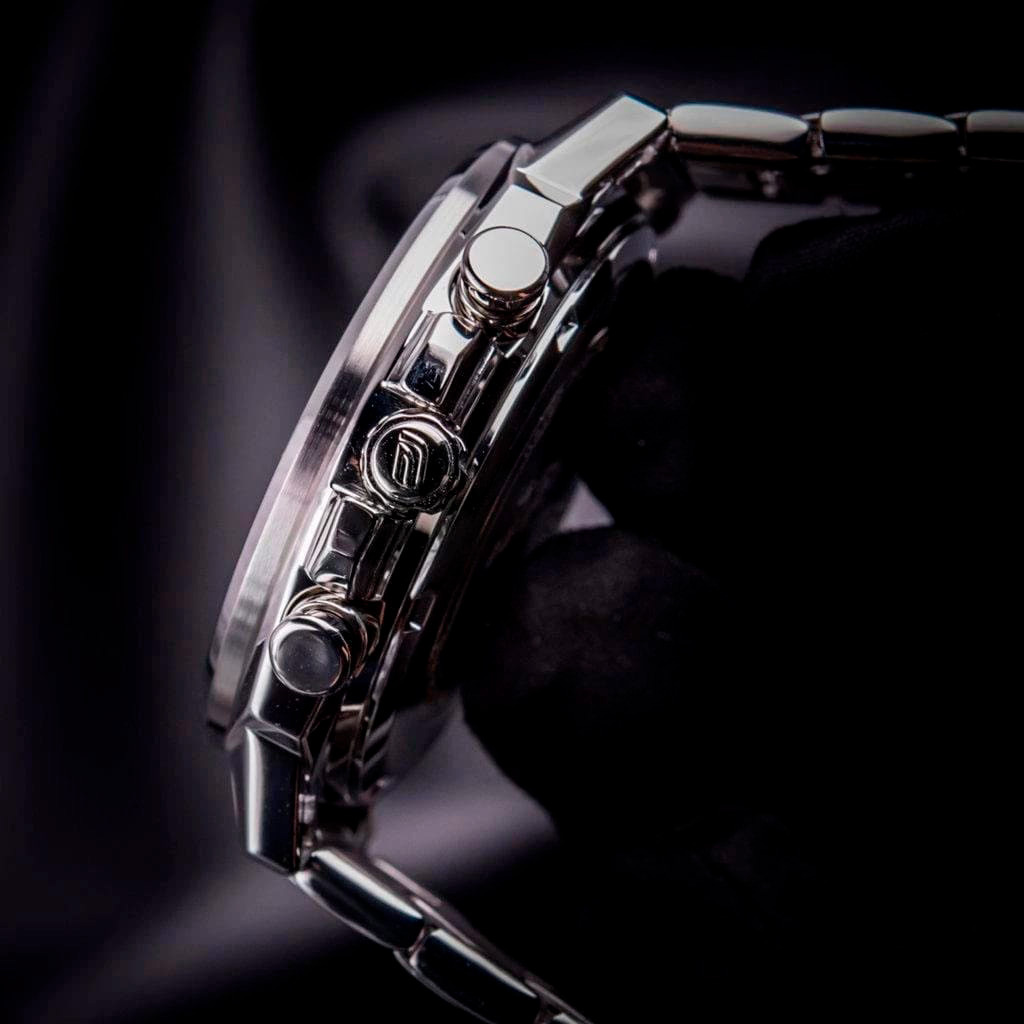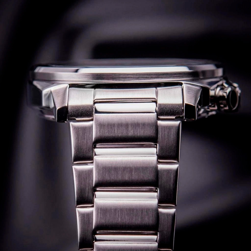 Ремешок: Браслет выполнен из нержавеющей стали. Тройная раскладывающаяся застежка, расстегиваемая одним касанием. Предохранительная защелка на браслете препятствует случайному расстегиванию.