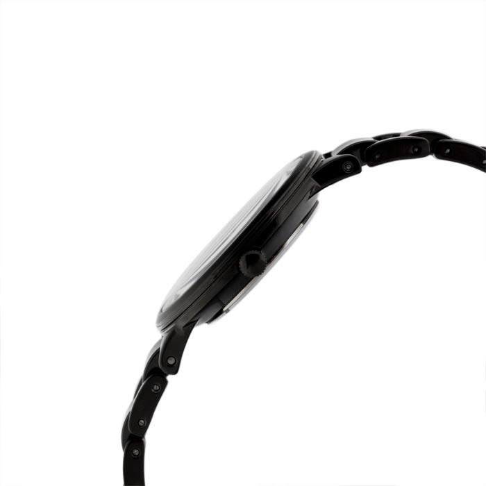 Корпус: Корпус этих часов выполнен из нержавеющей стали с IP покрытием чёрного цвета. Минеральное стекло. Чёрный циферблат украшен кристаллами. Диаметр корпуса 36 мм, толщина 9 мм. Водоустойчивость 30 метров.