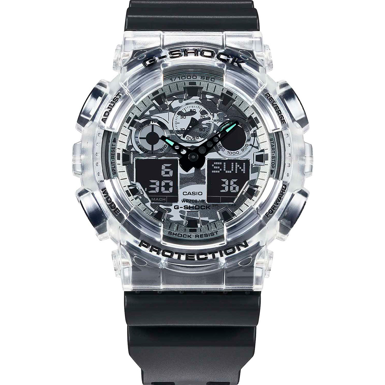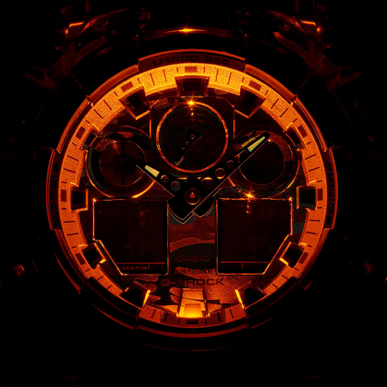 Корпус: Корпус часов изготовлен из прозрачного пластика с камуфляжным серым циферблатом. Метки в виде штрихов. Необритовое светонакопительное покрытие обеспечивает длительное послесвечение в темноте даже после кратковременного нахождения на свету. Минеральное стекло устойчиво к появлению царапин. Диаметр 51 мм. Водонепроницаемость 200 М.