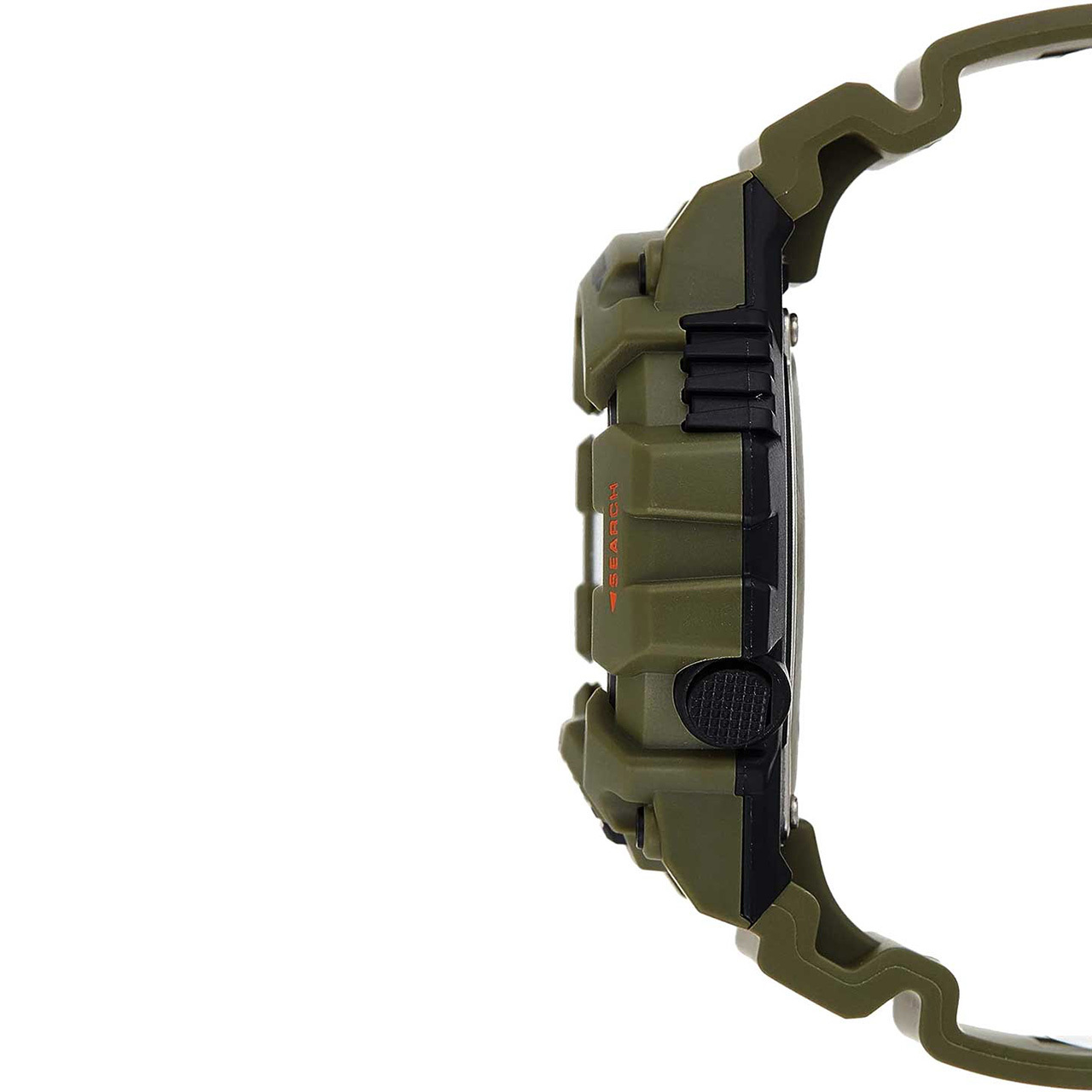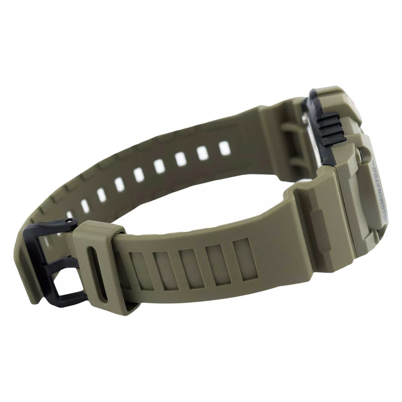Корпус: Корпус выполнены из полимерного материала зелёного цвета. Пластиковое стекло. Циферблат с метками в виде штрихов и арабской цифры. Светонакопительное покрытие Neobrite продолжает светиться в темноте даже после непродолжительного пребывания на свету. Стальная задняя крышка крепится на 4-х винтах. Габариты (Ш x В x Г) 53,3мм x 48,8мм x 16,6мм. Водонепроницаемость: 10 бар.