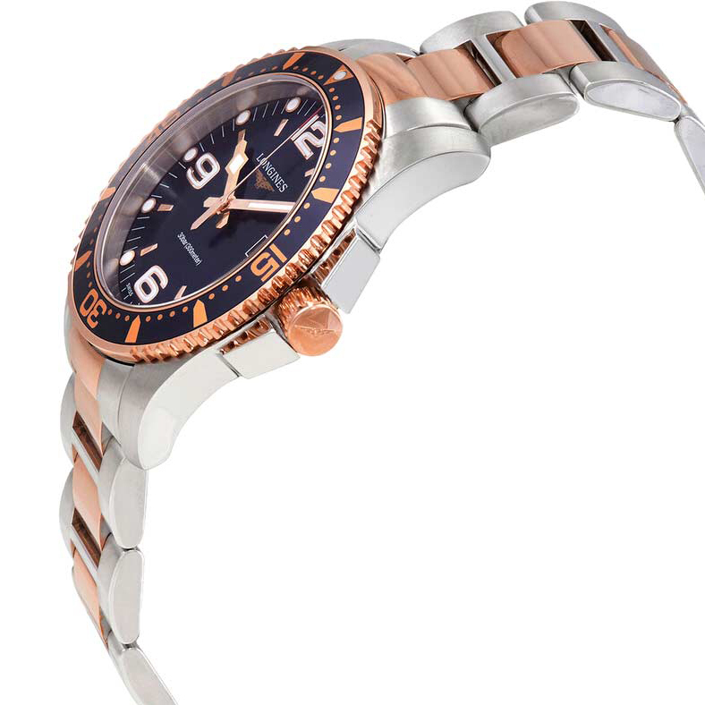 Корпус: Корпус выполнен из высококачественной стали с повышенной устойчивостью к коррозии, поверхности с матовой шлифовкой – сатинированием, полировкой до зеркального блеска с частичным PVD покрытием розового золота. Циферблат синего цвета с позолоченными стрелками и рисками. Индексы и стрелки с люминесцентным покрытием по технологии SuperLumiNova®. Стекло сапфировое с антибликовым покрытием. Однонаправленно вращающийся безель из анодированного алюминия, завинчивающиеся задняя крышка и заводная головка. Диаметр: 41 мм. Водозащита: 300 м.