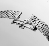 Ремешок: Браслет из нержавеющей стали с литыми звеньями, браслетная застежка тройного сложения “бабочка” раскладывается при нажатии кнопок двойной фиксации.