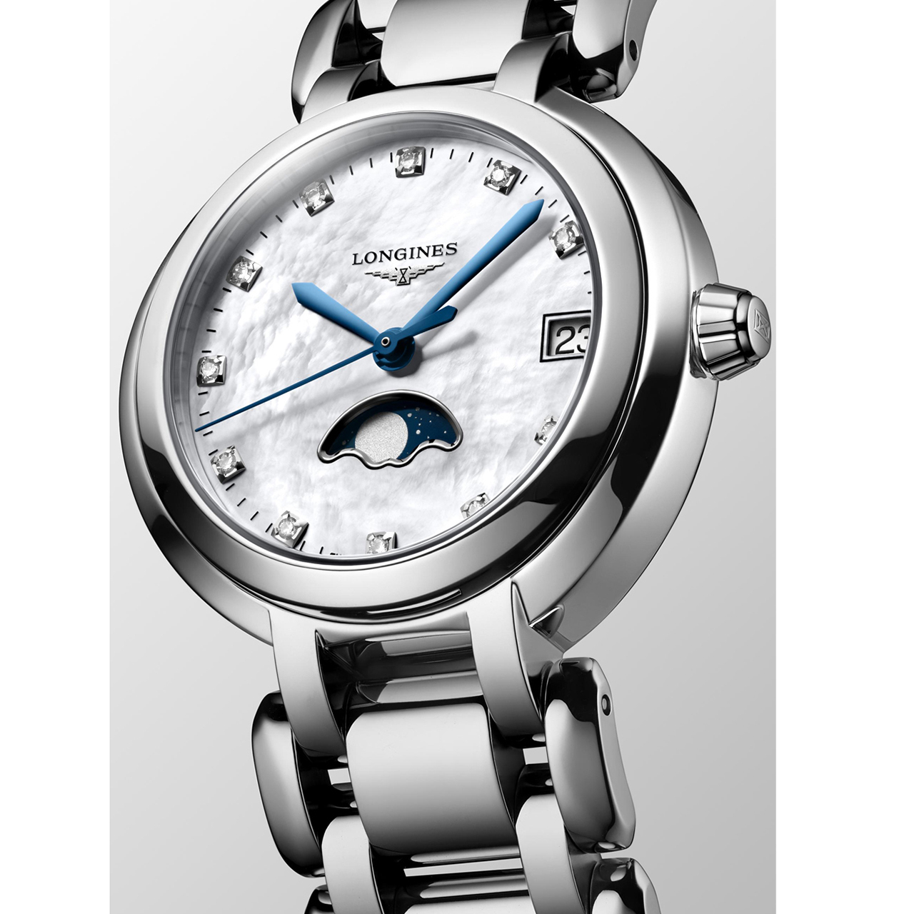 Корпус: Корпус и безель из матовой/полированной нержавеющей стали марки 316L. Перламутровый циферблат с 11 бриллиантами. Стальные, воронёные стрелки. Сапфировое стекло с антибликовым покрытием. Диаметр: 30.5 мм. Водонепроницаемость 30 м.