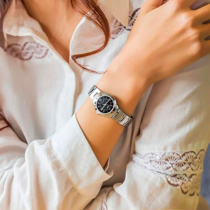 Корпус: Корпус изготовлен из гипоаллергенной латуни. Чёрный циферблат с метками в виде штрихов и арабских цифр. Прочное минеральное стекло обеспечит защиту часов от повреждений. Диаметр: 27 мм. Водонепроницаемость: 30 м.