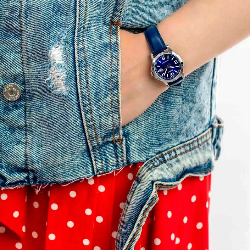 Корпус: Корпус из гипоаллергенной латуни. Циферблат синего цвета, выполнен по технологии Sunray (солнечные лучи). Метки в виде штрихов и арабских цифр.Размер 30,2x35,2x7.8 мм. Минеральное стекло. Водозащита 30 метров.