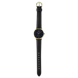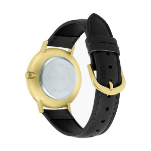 Корпус: Ударопрочный корпус часов сделан из нержавеющей стали с IP покрытием. Минеральное стекло устойчивое к возникновению царапин. Чёрный циферблат с золотистыми стрелками и часовыми индексами. Диаметр: 34 мм. Водонепроницаемость: 30 м.