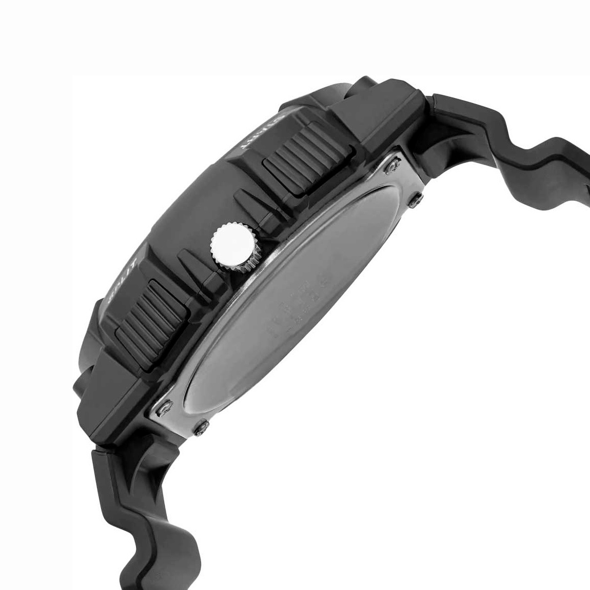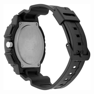 Корпус: Корпус из высококачественной полимерного материала – прочного и долговечного, с малым весом, чёрного цвета. Циферблат с объемной структурой крупными накладными метками. Необритовое светонакопительное покрытие обеспечивает длительное послесвечение в темноте даже после кратковременного нахождения на свету. Выступы корпуса служат защитой для переводной коронки. Задняя крышка из нерж. стали имеет винтовое соединение с корпусом. Габаритные размеры: