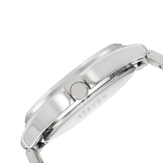 Корпус: Ударопрочный корпус часов сделан из нержавеющей стали. Минеральное стекло устойчивое к возникновению царапин. Серый циферблат, серебристые стрелки и часовые индексы. Диаметр 38,5 мм. Водонепроницаемость 30 м.