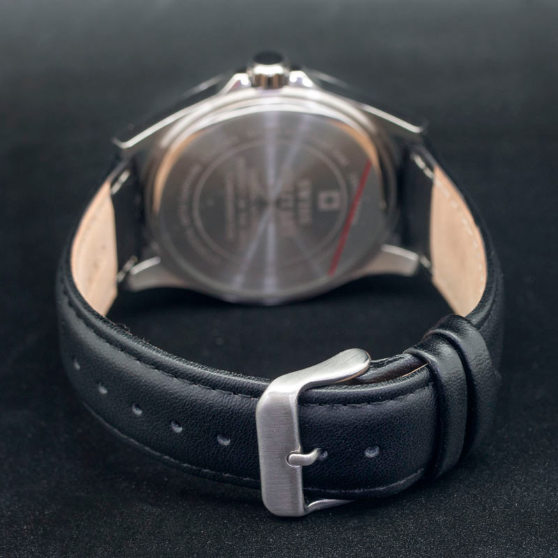 Функции: Индикация часов, минут и секунд при помощи центральных стрелок. Индикация даты и дня недели.