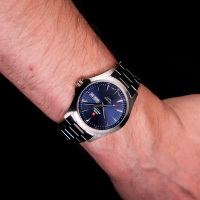 Корпус: Корпус выполнен из нержавеющей стали 316L. Циферблат синий. Минеральное стекло с сапфировым покрытием. Заводная головка с защитой. Диаметр корпуса составляет 42 мм. Водостойкость: 50 метров.