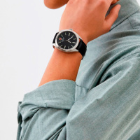 Ремешок: Ремешок из натуральной кожи чёрного цвета с классической застежкой.