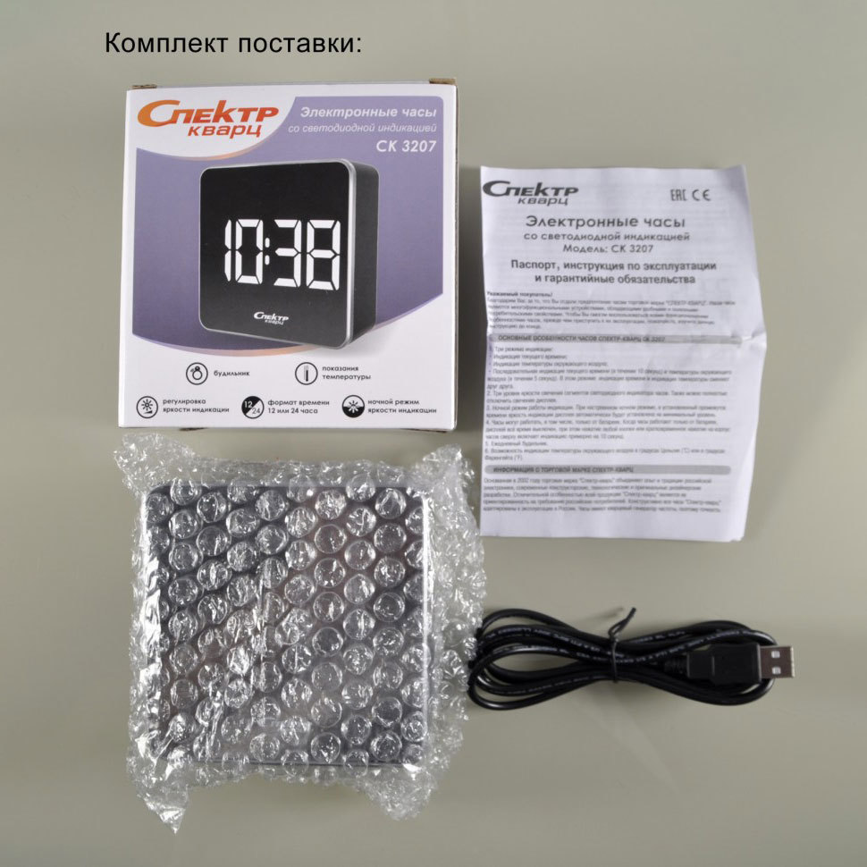 Цвет: Цве корпуса чёрный/серебристый. Данная модель часов имеет зеркальный тип дисплея. Часы имеют яркую светодиодную индикацию белого цвета.
