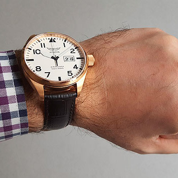 Корпус: Нержавеющая сталь с PVD - покрытием. Циферблат белый, чёрные стрелки и часовые индексы. Сапфировое стекло с антибликовым покрытием. Диаметр 42 мм. Водозащита 100 метров.