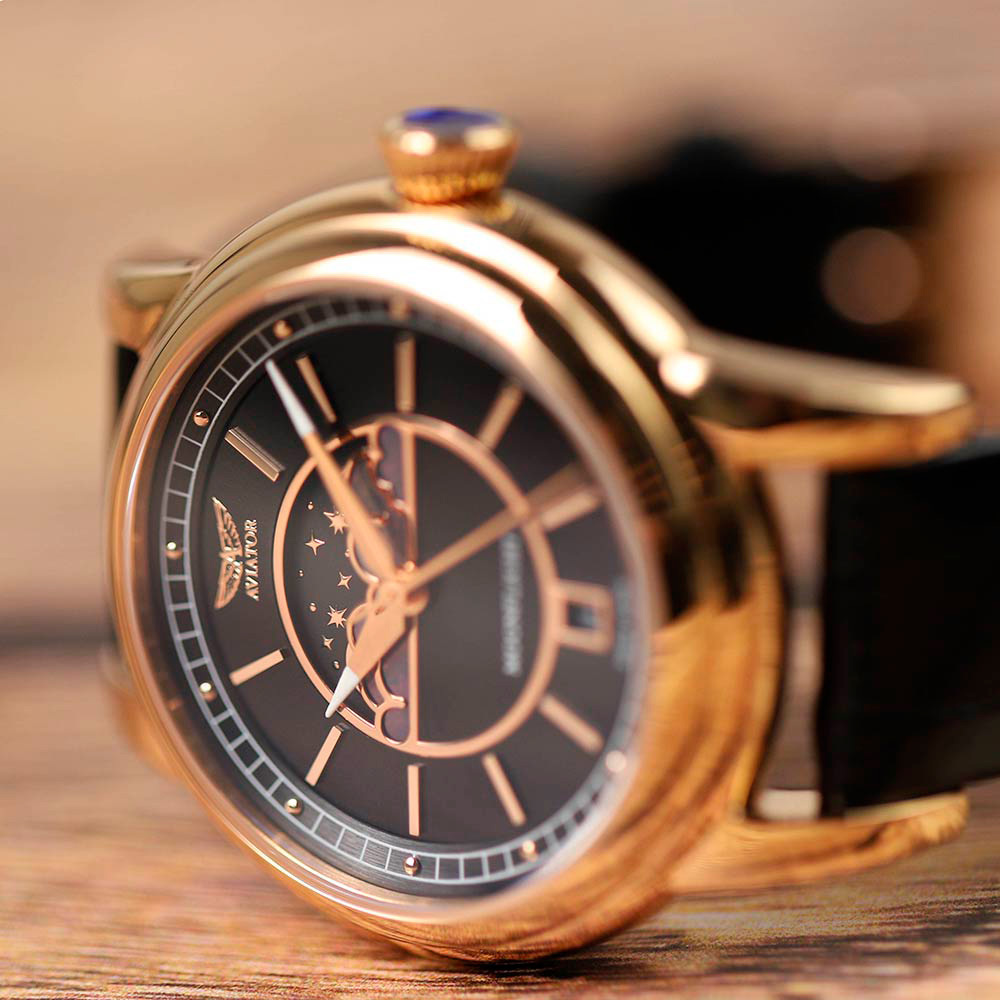 Корпус: Нержавеющая сталь марки 316L с розовым PVD покрытием. Чёрный циферблат. Стрелки и часовые индексы золотистого цвета покрыты люминесцентным составом SuperLuminova. Облака на циферблате украшены перламутровыми вставками. Задняя крышка с гравированным изображением авиалайнера Douglas DC-3 имеет винтовое соединение с корпусом. Рифлёная заводная головка. Сапфировое стекло с антибликовым покрытием. Водонепроницаемость 100 метров. Диаметр 36 мм.